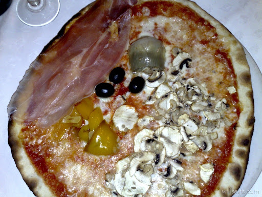 This is their 4 seasons pizza. more than 1 artichoke would have been nice but look, on the other hand, at that lovely slice of prosciutto